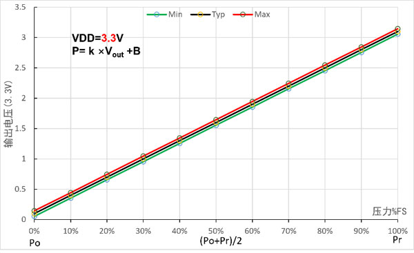 | Sinabi ni Sinabi ni Product model(3.3V) | Saklaw (kPa) | Output boltahe(V) | Mga coefficient at offset | |||